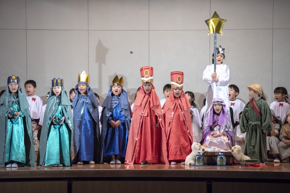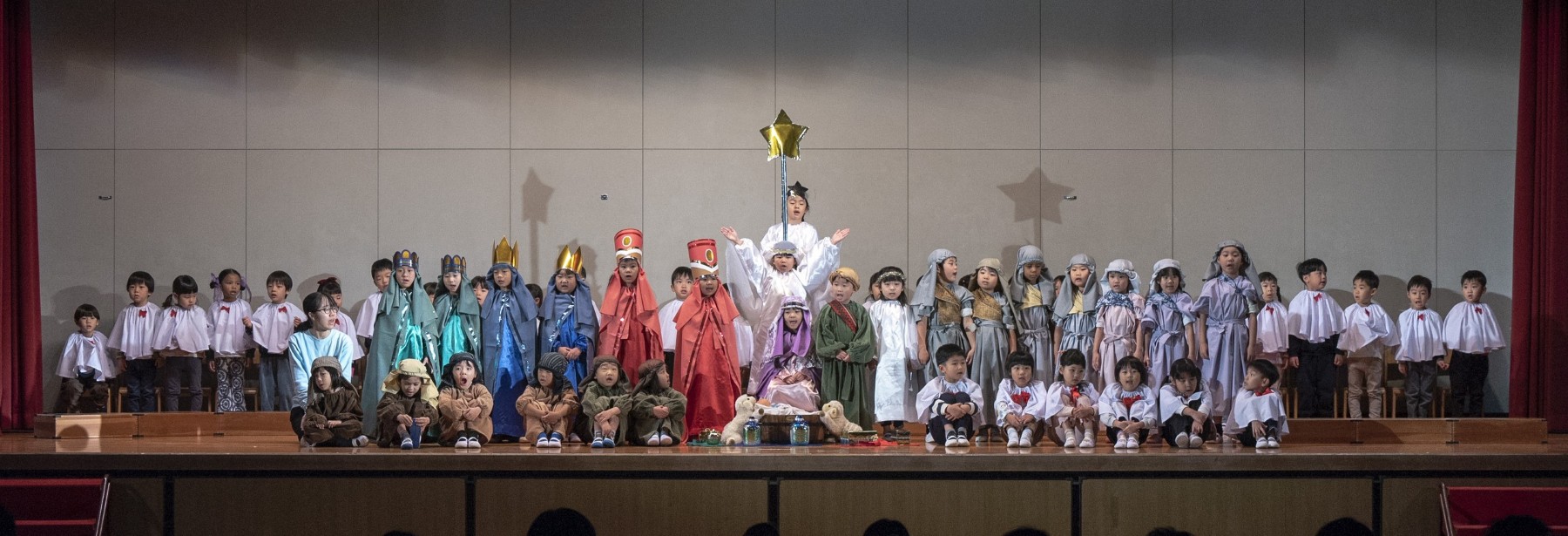 幼児クラスのクリスマス会を大宮小学校の講堂で行いました。 3歳~5歳全員での降誕劇、ホームのお友だちと一緒のコンサート、たくさんのお家の人たちと一緒に楽しいクリスマスのひと時を過ごすことができました。