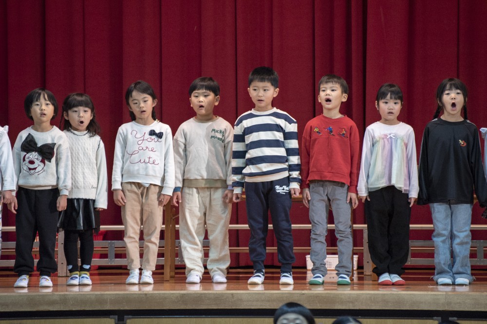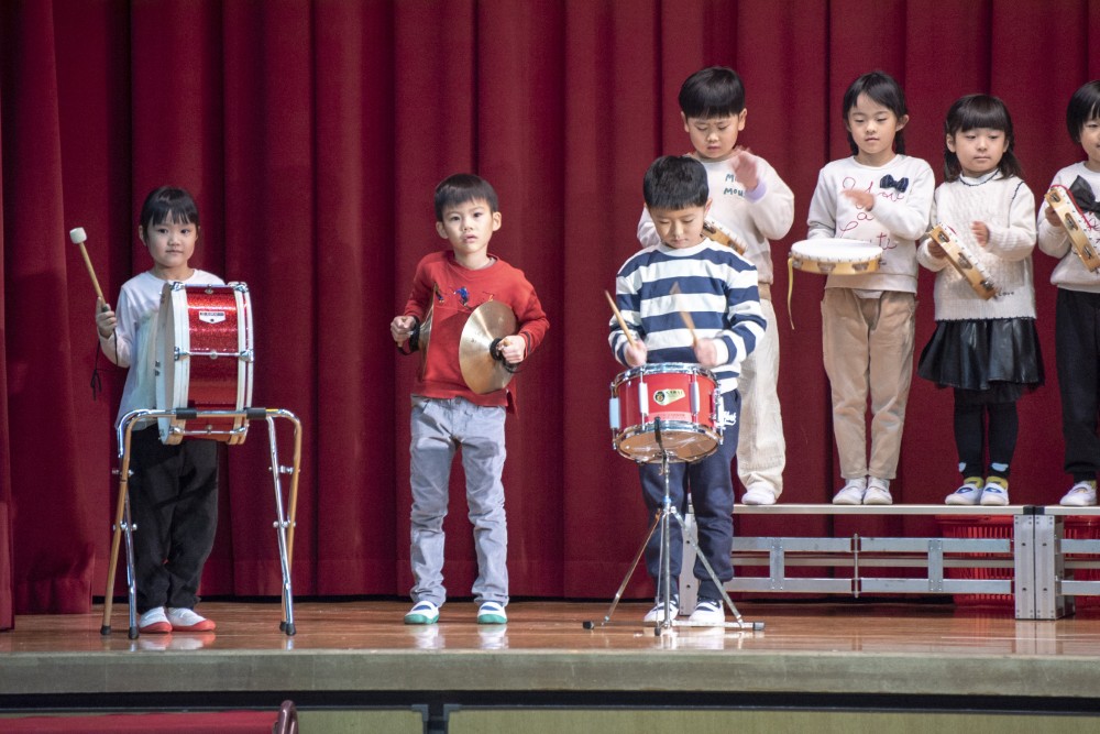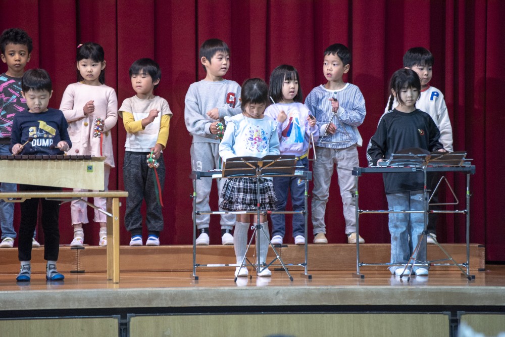 5歳さんは合奏と歌です。日頃の練習の成果を披露できました。