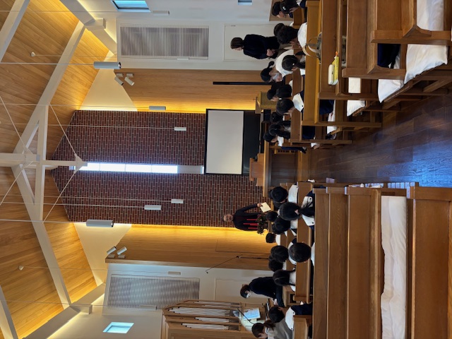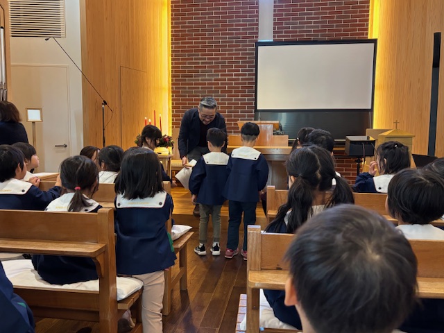 近くの森小路教会にクリスマス礼拝に行きました。牧師先生からクリスマスのお話を伺い、讃美歌を歌い、献金もお捧げしました。みんなでイエス様の誕生をお祝いし、感謝と平和を祈りました。