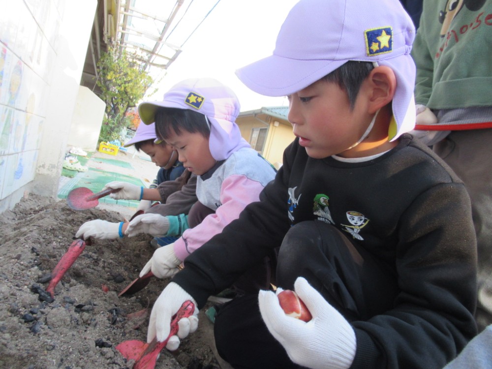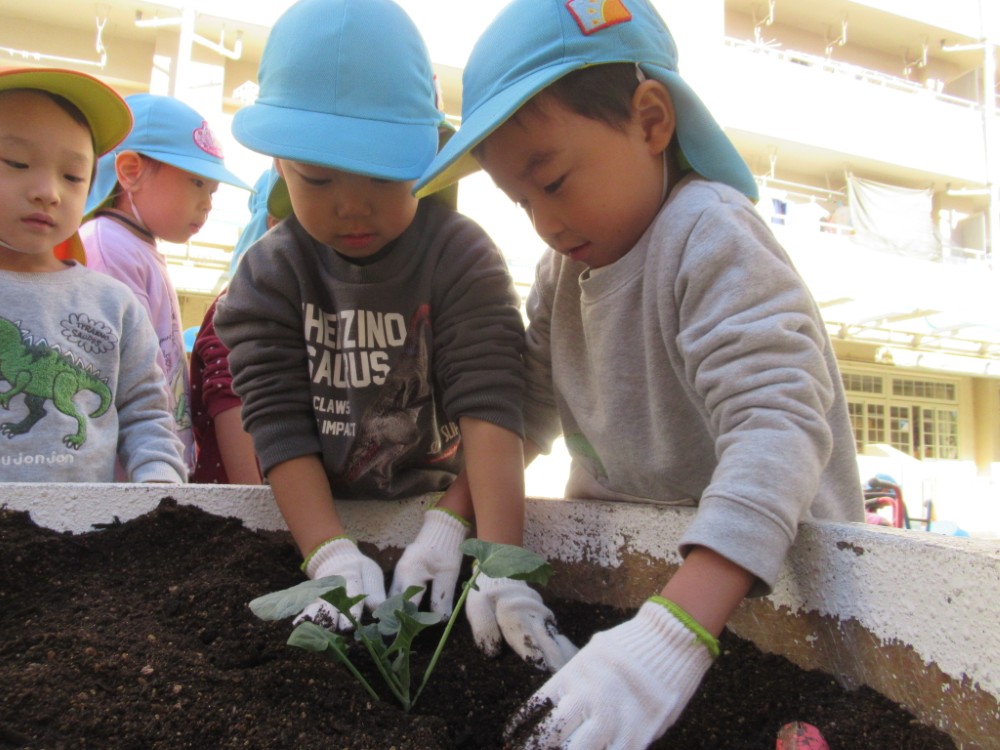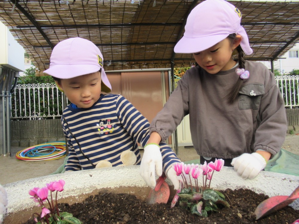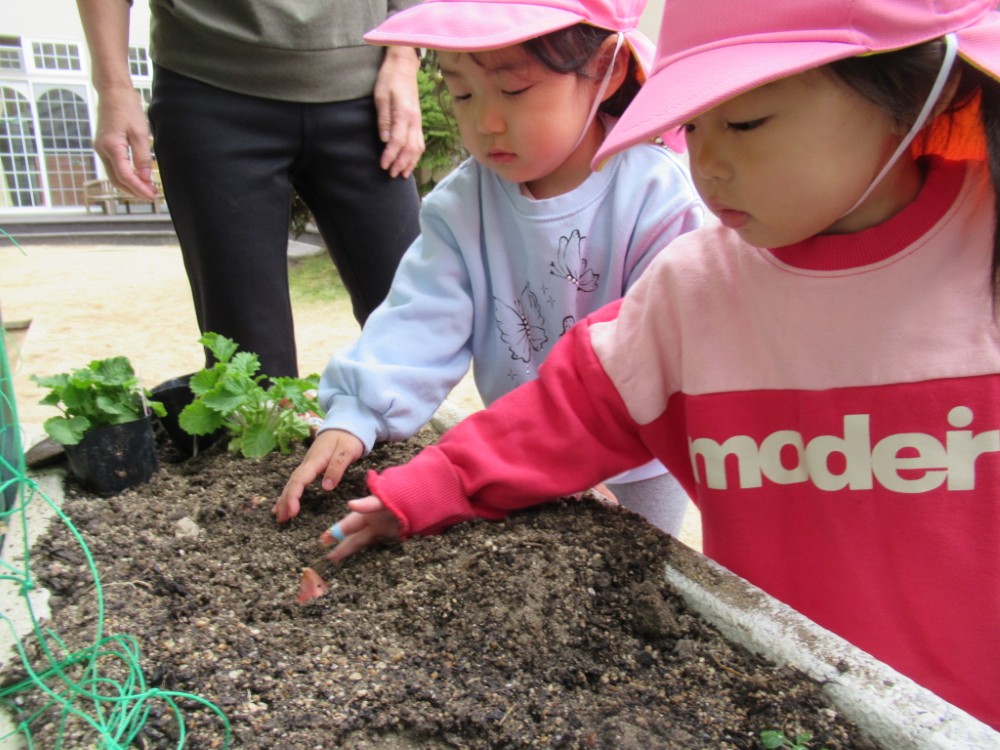 みんなでジュリアンやサクラソウなどを植えて、園庭が華やかになりました。 5歳のすずらんさんはちゅうりっぷの球根も植えて水やりをしています。 可愛い花を咲かせてくれる日が待ち遠しいです。