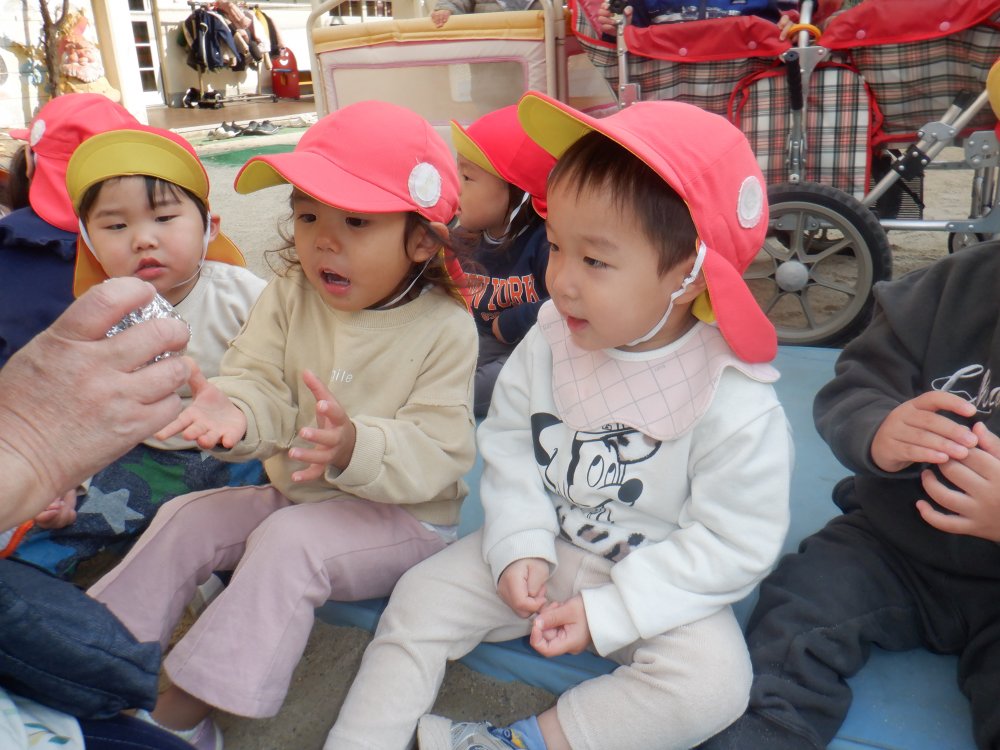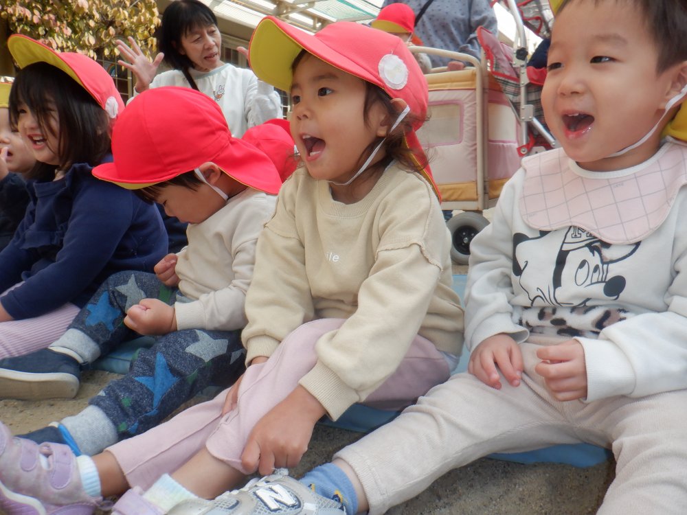 「やきいもグーチーパー」の手遊び歌を歌いながら楽しく待ちます。