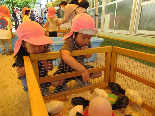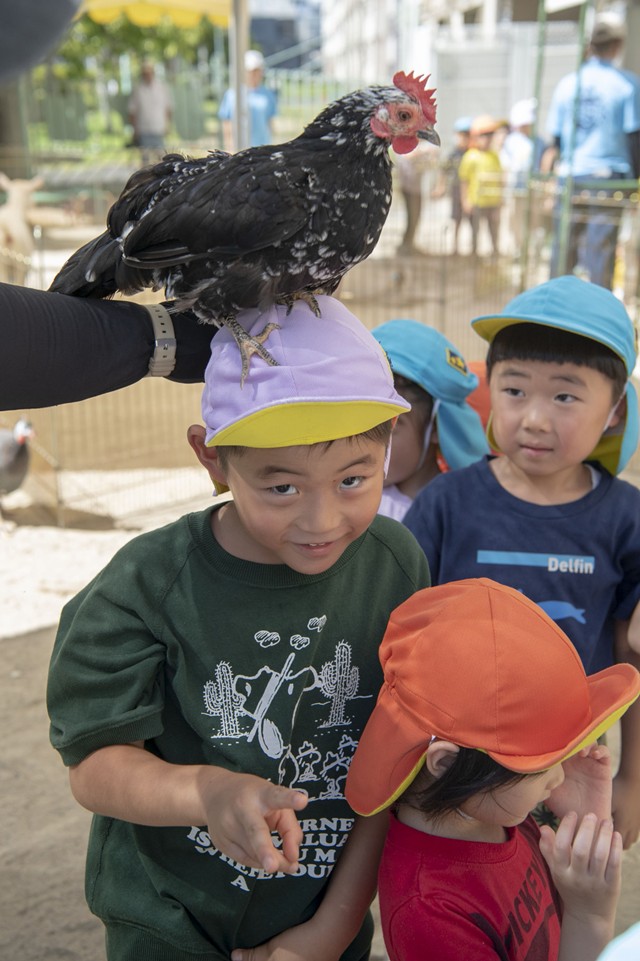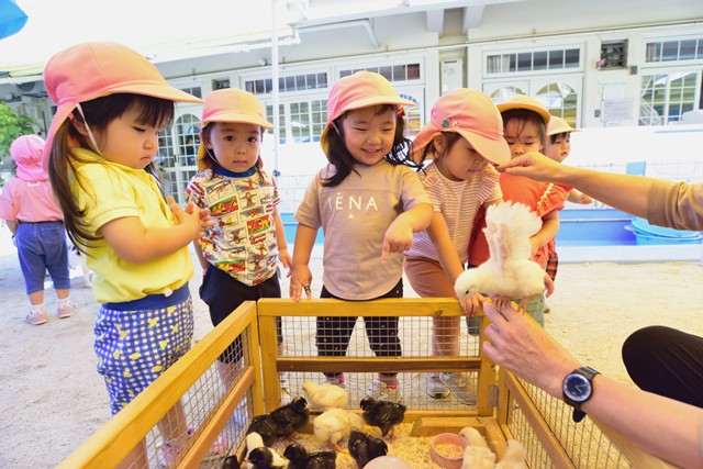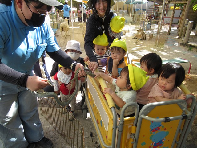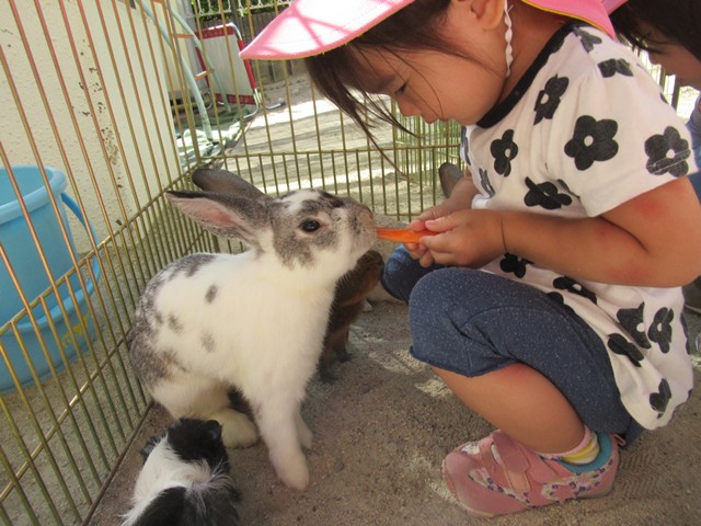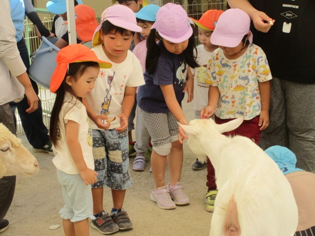 大宮保育園の園庭にたくさんの動物たちが来てくれました。恐る恐る触ってみる子、どんどんたくさんの動物たちと仲良くなっていく子など、反応は様々。餌をあげたり抱っこしたり、蛇を触ったりポニーに乗せてもらったりと楽しいふれあいの時間を過ごしました。